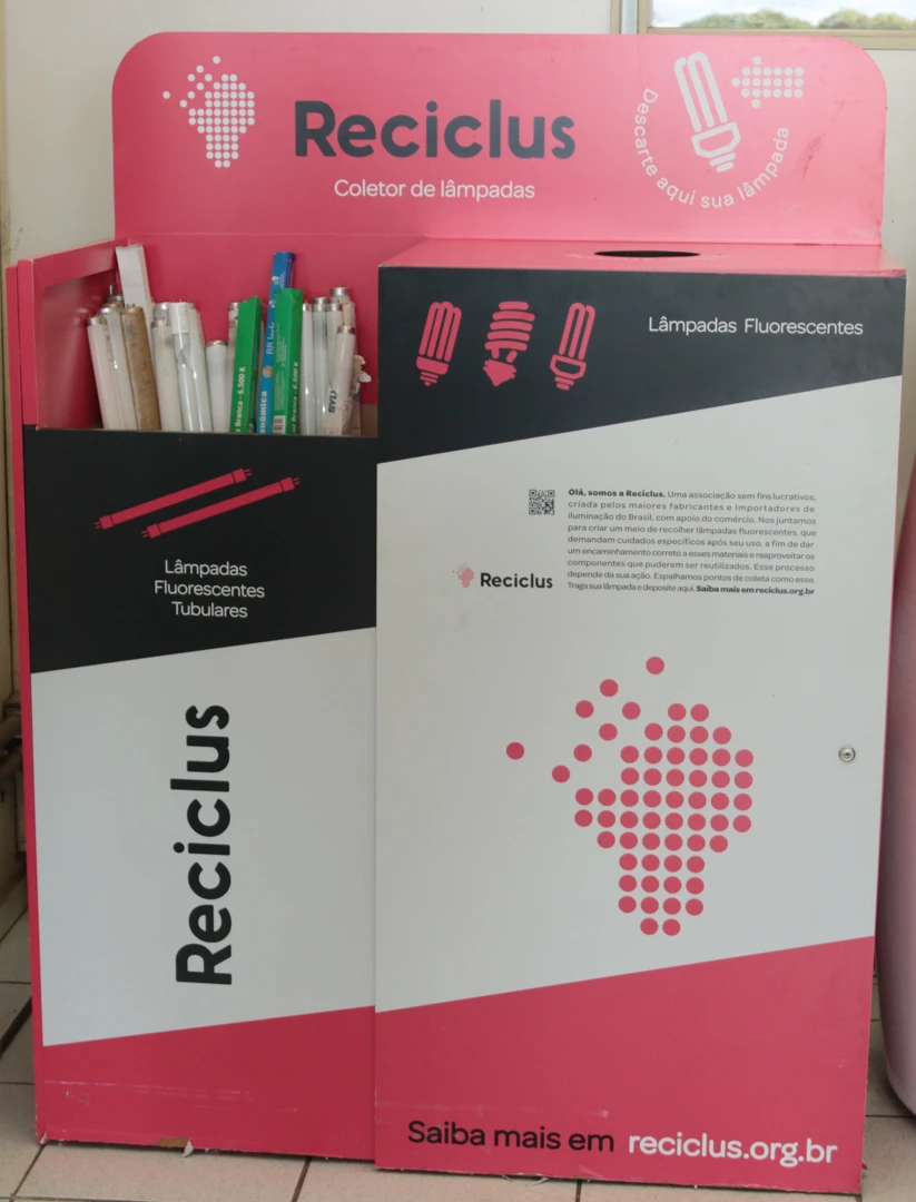 A instalação dos pontos de coleta está sendo realizada pela Reciclus, uma associação sem fins lucrativos que reúne os principais produtores e importadores de lâmpadas com o objetivo de promover o Sistema de Logística Reversa. As lâmpadas são armazenadas em locais adequados e, depois, destinadas corretamente a empresas especializadas na descontaminação e reuso de seus componentes.