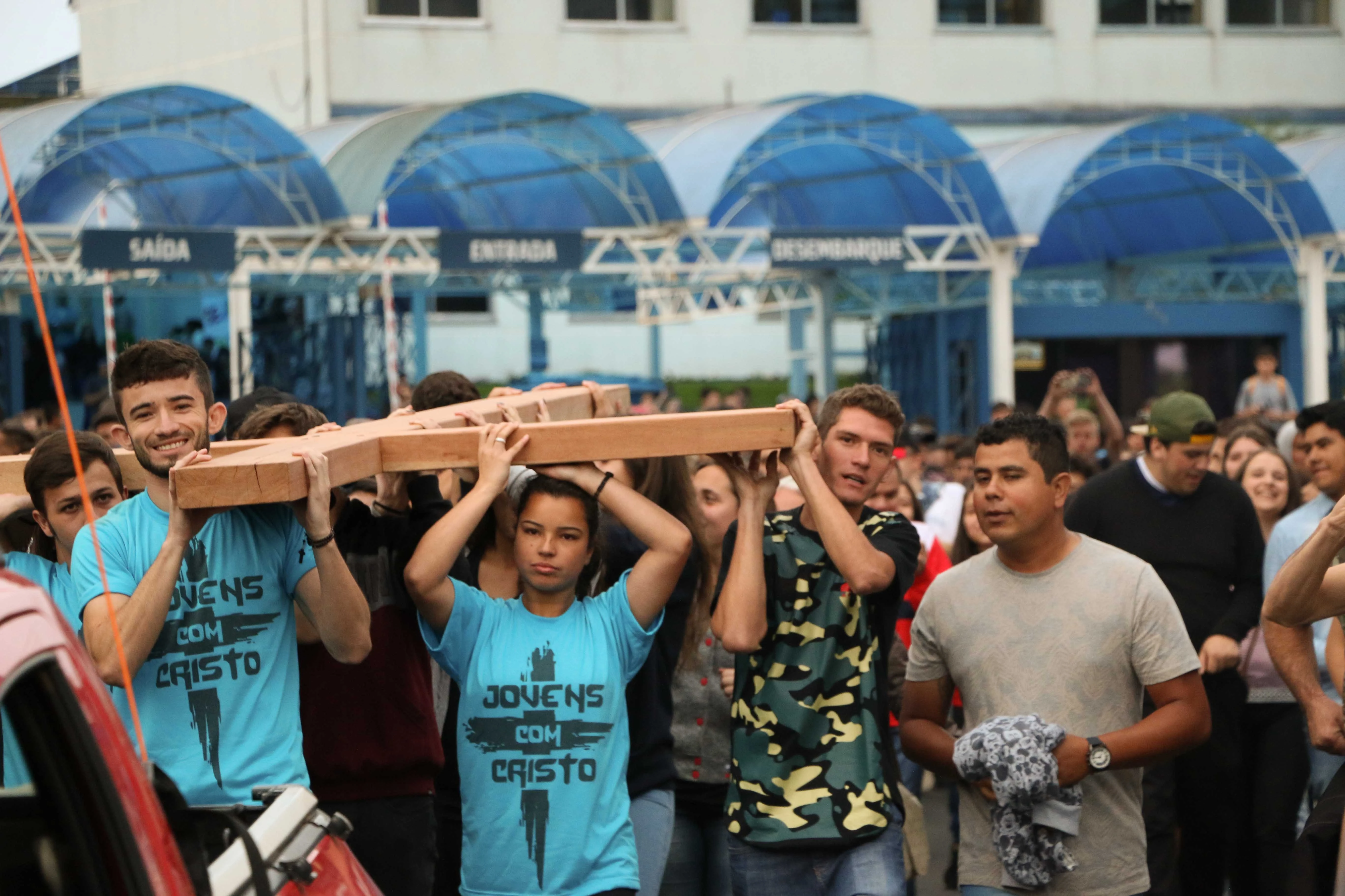 Um dos pontos altos da programação do Dia Nacional da Juventude na Diocese foi a caminhada com a cruz, que saiu pela Rua Coronel Dulcídio, desceu a Francisco Búrzios e entrou pela Bonifácio Vilela até a frente da Icthus, onde um palco foi montado no meio da rua. Toda a quadra fechada para o DNJ. A cruz era uma réplica da usada durante a Jornada Mundial da Juventude, tinha 3 metros e 80 centímetros, e, foi carregada pelos jovens. Ali, três shows animaram a galera. Tudo foi transmitido, ao vivo, pela Web TV da Paróquia Nossa Senhora de Fátima, de Telêmaco Borba. Padre Toninho participava pela primeira de um evento deste porte no Paraná.