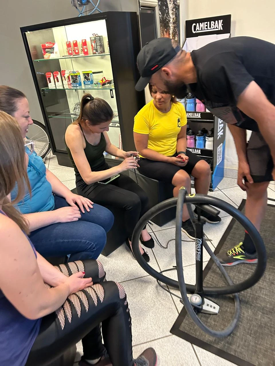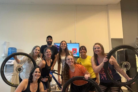 As participantes já tiveram oficinas de bike indoor, mecânica básica de bike, treino de ciclismo e treino de caminhada e corrida.