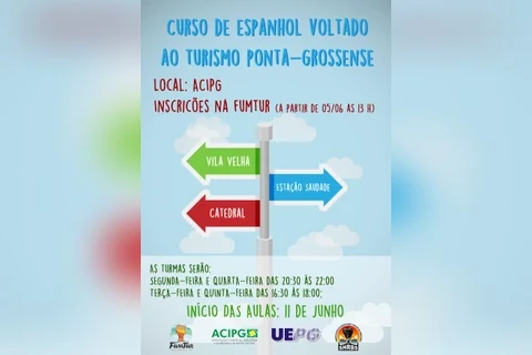 IMPRENSA/Ponta Grossa - Começam dia 11 de junho as aulas de Espanhol para operadores de turismo de Ponta Grossa. O curso é uma iniciativa da Fundação Municipal de Turismo (Fumtur), com apoio da UEPG, Sindicato dos Hotéis, Restaurantes, Bares e Similares dos Campos Gerais e Associação Comercial, Industrial e Empresarial de Ponta Grossa, o anúncio foi feito nesta segunda-feira (04) pelo presidente da Fundação, Edgar Hampf.
