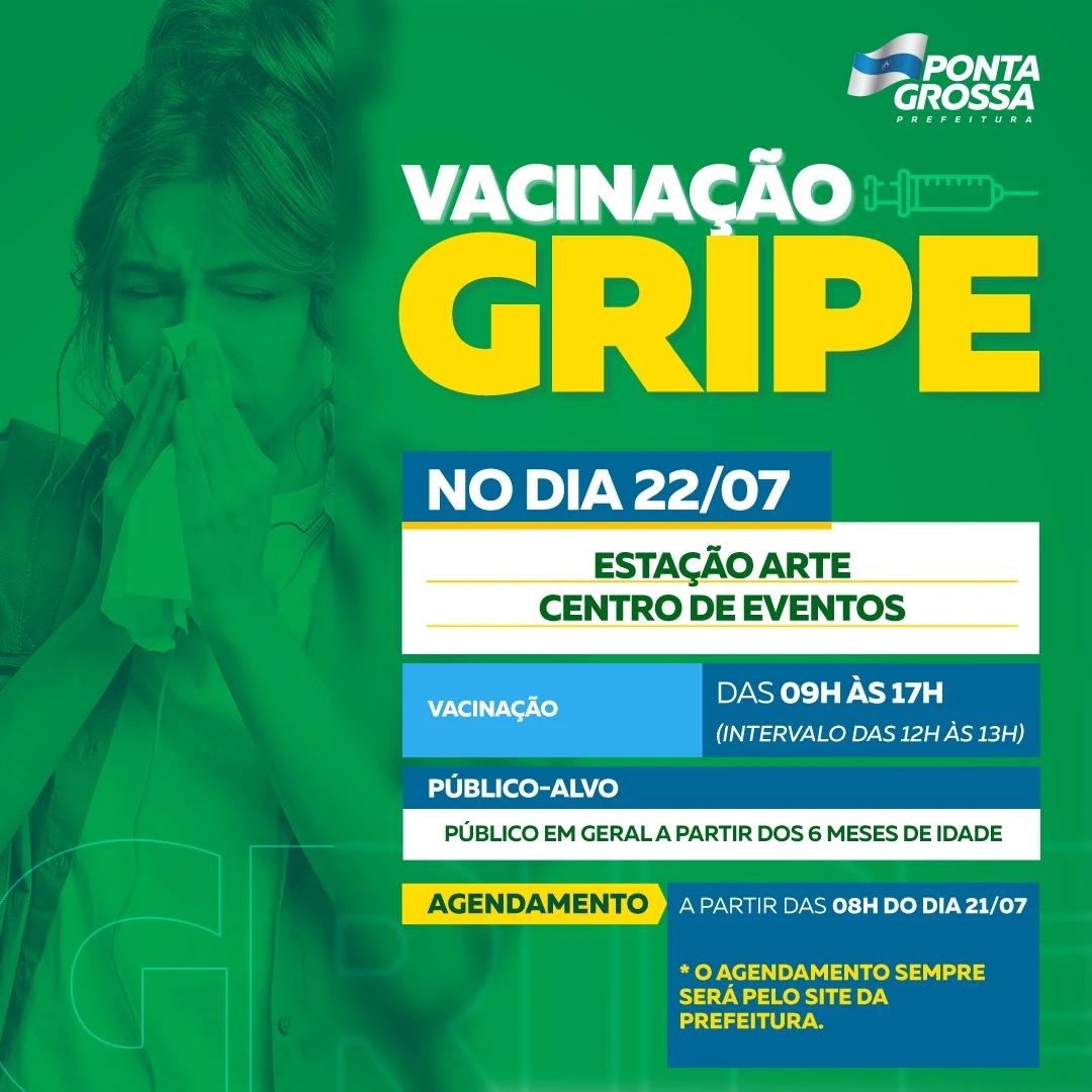 COM ASSESSORIAS - Ponta Grossa segue com a imunização da Campanha de Vacinação contra a Gripe para toda a população acima de seis meses de idade. Esta imunização continuará ocorrendo devido quantitativo de doses remanescentes. O público deve realizar o agendamento no site da Prefeitura (