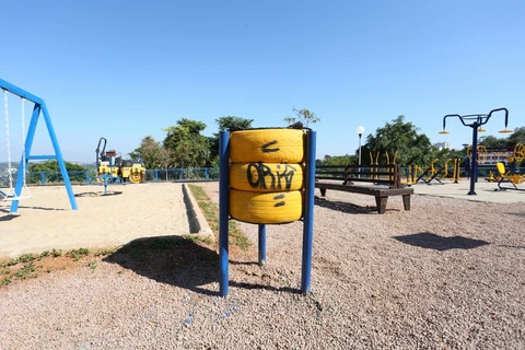 MILLENA SARTORI/Ponta Grossa - Na madrugada desta sexta-feira (27) a Praça Maria Joana, que está sendo construída pela Prefeitura Municipal, teve sua estrutura vandalizada. Localizado na rua Visconde de Nacar, o espaço está recebendo seu últimos ajustes para a inauguração, mas nesta noite foi alvo de pichadores e teve equipamentos quebrados.