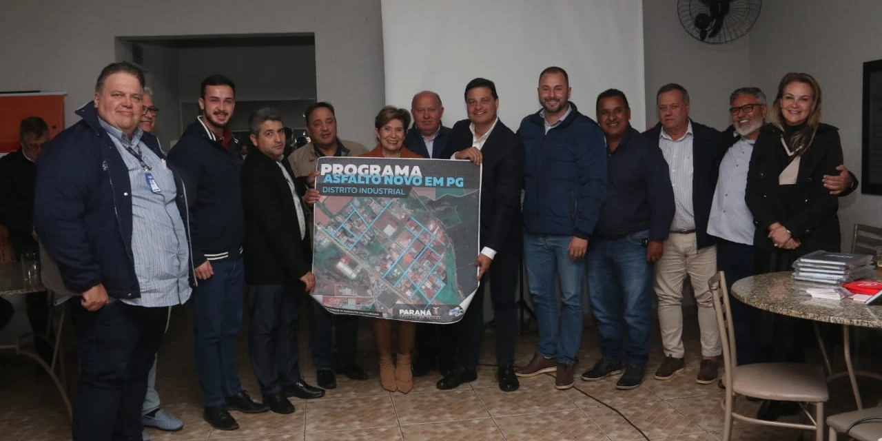 COM ASSESSORIAS - A prefeita Elizabeth Schmidt participou ontem da reunião ordinária do Núcleo das Indústrias de Ponta Grossa (NDI) e firmou compromisso com os empresários para a pavimentação do Distrito Industrial. O pacote de obras contempla a conclusão da pavimentação de ruas do Distrito Industrial, totalizando 8 quilômetros de asfalto, com investimentos de R$ 18 milhões.