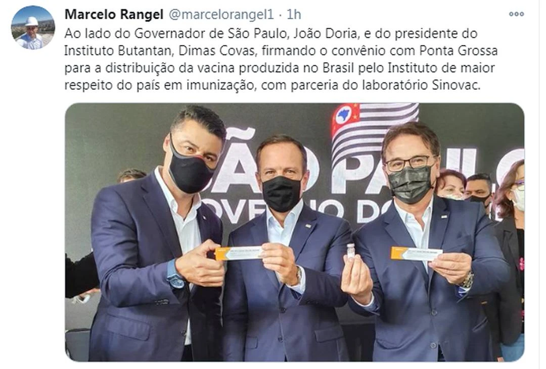 O prefeito de Ponta Grossa, Marcelo Rangel (PSDB), confirmou o convênio entre o município e o governo de São Paulo para a compra de vacinas do primeiro lote da CoronaVac.