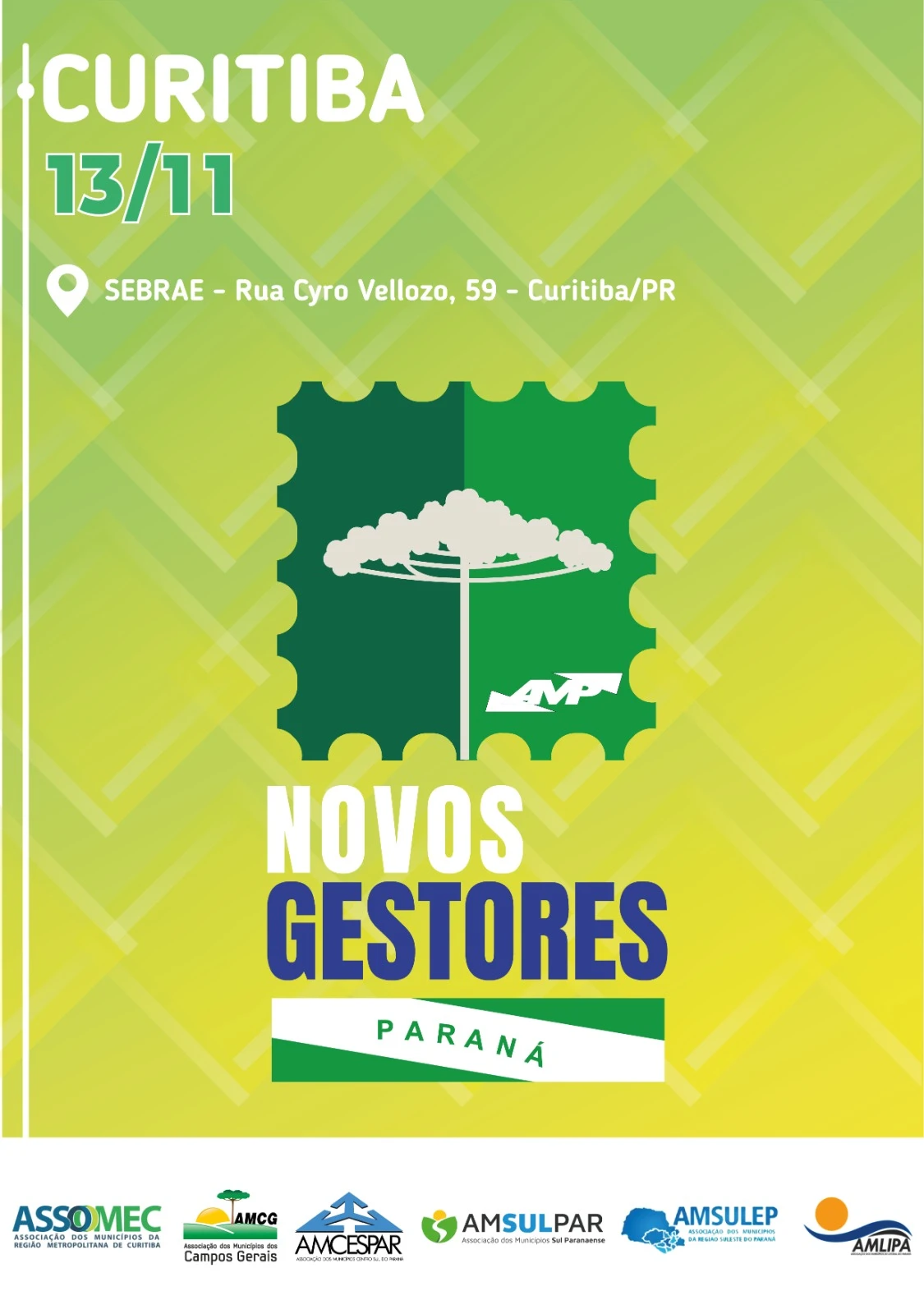 COM ASSESSORIAS - Prefeitos e prefeitas das cidades que fazem parte da Associação dos Municípios dos Campos Gerais (AMCG) estarão em Curitiba nesta quarta-feira (13) para participar do evento 'Novos Gestores'. Promovido pela Associação dos Municípios dos Paraná (AMP), a iniciativa contará com a participação de prefeitos eleitos neste ano e também dos gestores que ainda possuem mandato vigente.