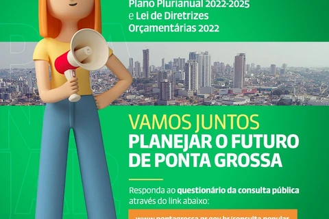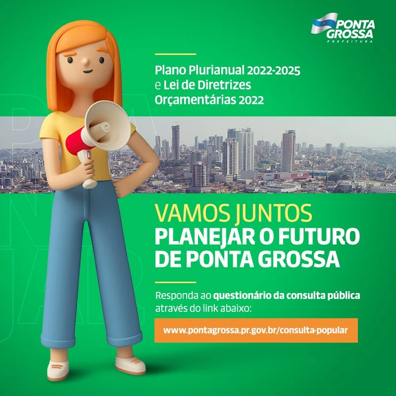 COM ASSESSORIAS - A Prefeitura de Ponta Grossa já disponibilizou formulário online de consulta pública para elaboração da Lei de Diretrizes Orçamentárias 2022 e do Plano Plurianual 2022-2025. A população ponta-grossense pode participar do planejamento do orçamento da cidade e prioridades para a administração municipal para os próximos anos. Através da consulta pública, os munícipes podem indicar à Prefeitura quais são os setores prioritários de investimentos, além de realizar outras sugestões. O preenchimento do formulário será feito exclusivamente pelo site da Prefeitura, como medida de prevenção ao coronavírus, evitando o contato da população com os formulários impressos.