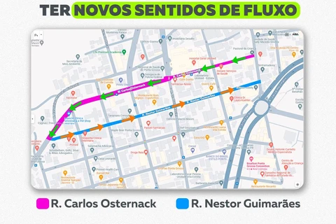 Segundo o departamento de Engenharia de Tráfego do Município, com a mudança, a rua Carlos Osternack/Joaquim de Paula Xavier passa a ter novo sentido de fluxo partindo da rua Santana até o entroncamento com a Nestor Guimarães.