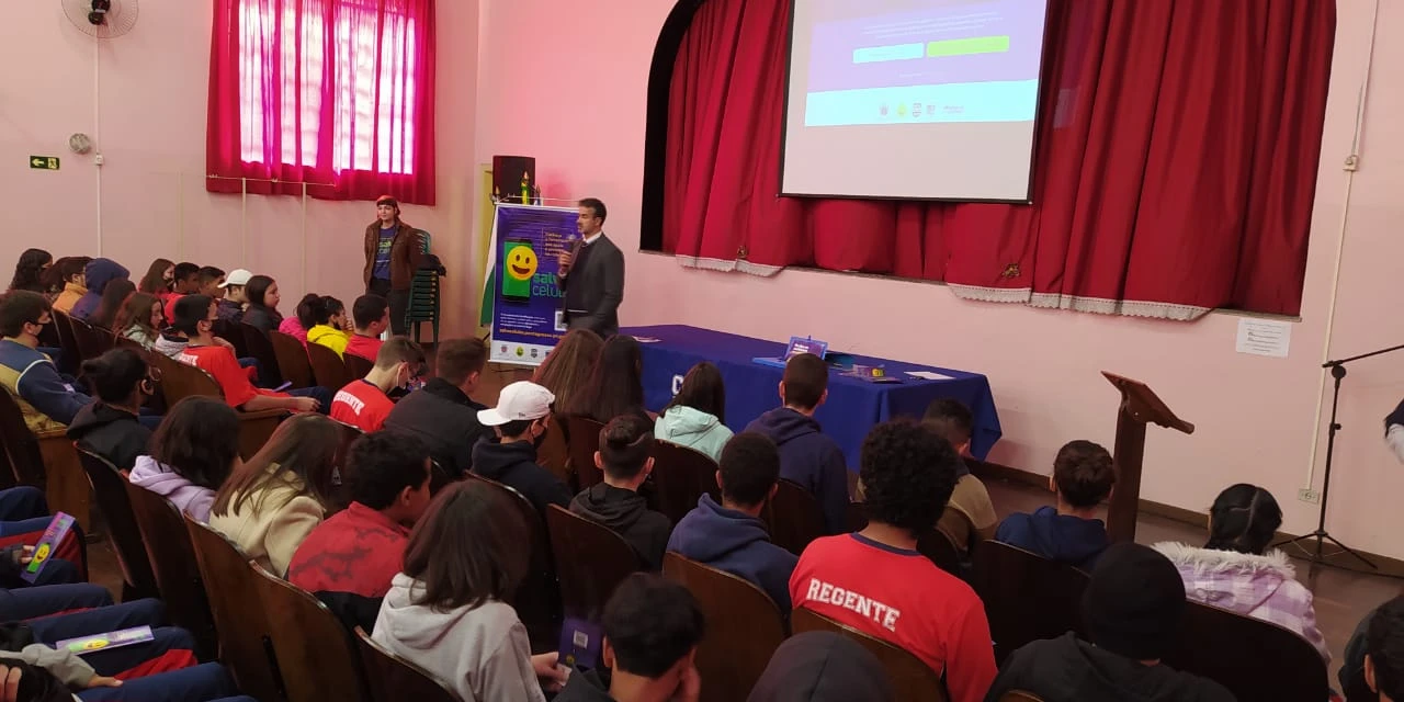 COM ASSESSORIAS - A Prefeitura Municipal de Ponta Grossa promoveu, na tarde da última quinta-feira (19), uma palestra sobre o programa ‘Salve Celular’ no Colégio Regente Feijó. Ao todo, 182 alunos participaram da ação.
