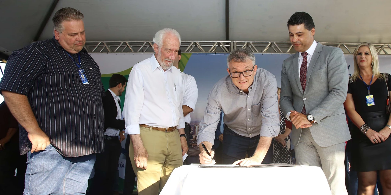 COM ASSESSORIAS - A Regional Centro do Sebrae/PR, em Ponta Grossa, poderá ganhar uma nova sede dentro do Parque Ecotecnológico Sérgio Scorsim, inaugurado nesta quarta-feira (23), pelo governador do Paraná, Carlos Massa Ratinho Junior, e pelo prefeito de Ponta Grossa, Marcelo Rangel. O protocolo de intenção para a doação da área foi assinado pelo chefe do Executivo municipal, pelo presidente do Conselho do Sebrae/PR e vice-governador do Estado, Darci Piana, e pelo diretor-superintendente do Sebrae/PR, Vitor Roberto Tioqueta.