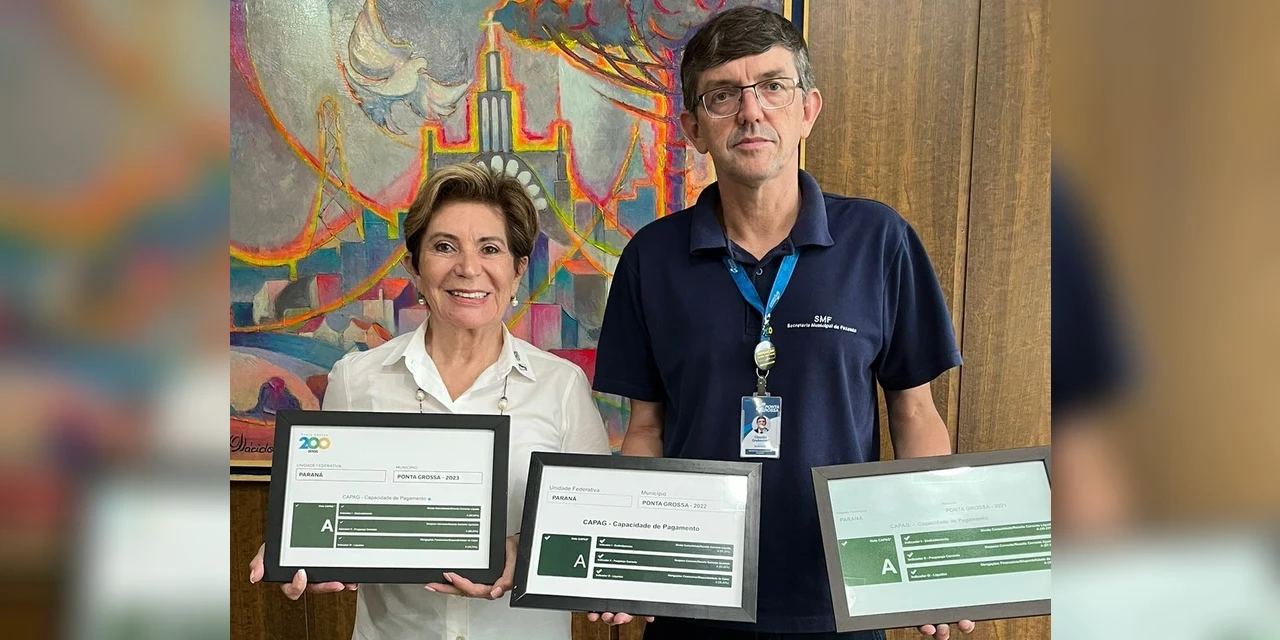 COM ASSESSORIAS - Pelo terceiro ano consecutivo a Prefeitura de Ponta Grossa obteve classificação A na análise da capacidade de pagamento (CAPAG) realizado pelo Tesouro Nacional, ligado ao Ministério da Economia. Os municípios que possuem CAPAG "A" são elegíveis à contratação de garantias da União em seus financiamentos. Ou seja, Ponta Grossa, mais uma vez, foi bem avaliada pelo Tesouro Nacional, o que permite à cidade acessar empréstimos com juros mais baixos, já que tem a União como garantidora, o que diminui o risco de crédito da operação.