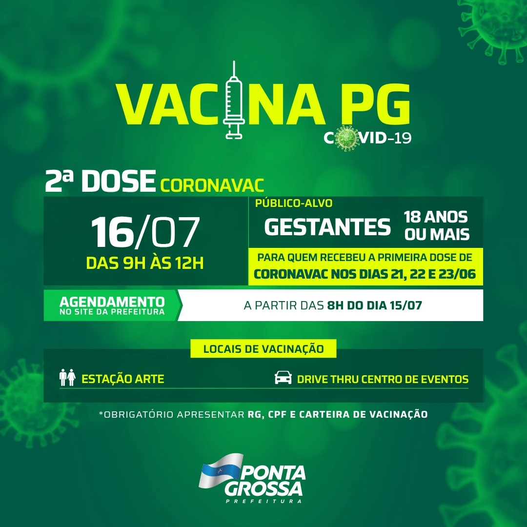 https://www.pontagrossa.pr.gov.br/). Todas devem apresentar, além de RG e CPF, a carteira de vacinação com a primeira dose registrada.