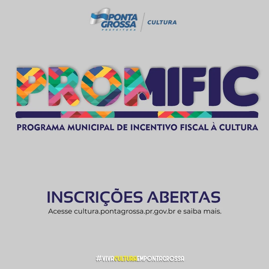 COM ASSESSORIAS - Incentivar a produção cultural em Ponta Grossa. Esse é o objetivo do Programa Municipal de Incentivo Fiscal à Cultura (Promific), iniciativa que permite a captação junto a patrocinadores de recursos destinados para a articulação de projetos culturais. As inscrições já estão abertas e podem ser feitas até o dia 20 de novembro na página da Secretaria Municipal de Cultura.