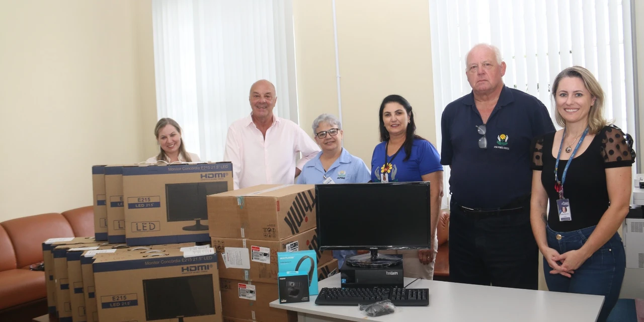 COM ASSESSORIAS - A Prefeitura de Ponta Grossa, através da Fundação de Assistência Social, entregou 10 computadores para a Associação de Pais e Amigos dos Excepcionais (APAE). Os equipamentos que custaram cerca de 52 mil reais foram adquiridos com recursos oriundos de uma emenda parlamentar de autoria do Senador Oriovisto Guimarães que destinou para entidade um valor total de 240 mil reais.