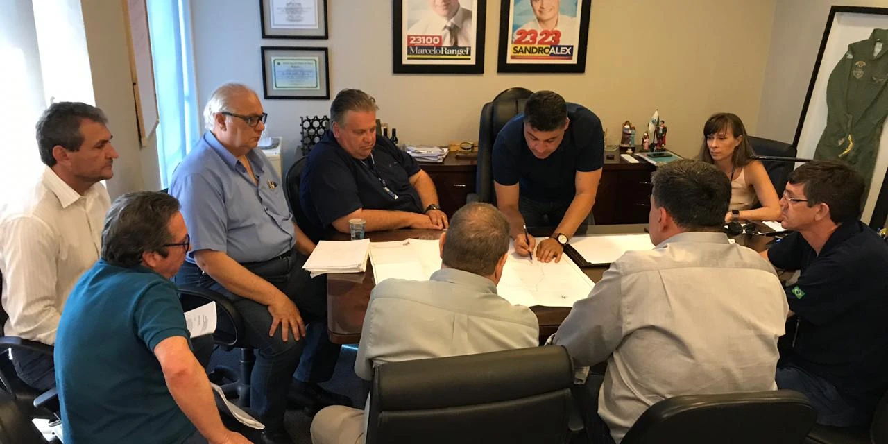 IMPRENSA/Ponta Grossa - Em reunião na tarde de hoje (16), a Prefeitura de Ponta Grossa definiu para o final deste mês a entrega das benfeitorias realizadas na região do Parque Ecotecnológico. Participaram do encontro o prefeito Marcelo Rangel, os secretários municipais Cláudio Grokoviski e José Loureiro, e os representantes das secretarias de Indústria, Comércio e Qualificação Profissional e da Fazenda, Adilson Strack, Michael João Haddad Neto e Tonia Mansani. Representando a Universidade Tecnológica Federal do Paraná, estiveram presentes o reitor Luiz Alberto Pillati e o diretor geral Antonio Augusto de Paula Xavier.