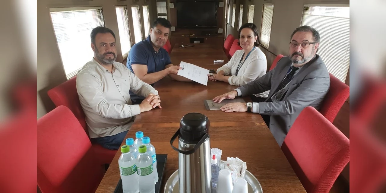 IMPRENSA/Ponta Grossa - No início da tarde de hoje (18) o prefeito Marcelo Rangel, acompanhado dos secretários municipais de Administração e Recursos Humanos (SMARH), Ricardo Linhares e de Infraestrutura e Planejamento (SMIP), Celso Sant’anna, oficializou o pedido de cessão da área onde encontram-se as oficinas da Rumo, próximo ao Estádio do Germano Kruger. Eles foram recebidos pela diretora, Giana Custódio.