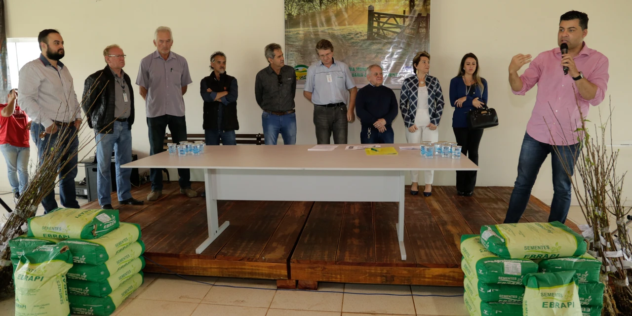 IMPRENSA/Ponta Grossa - Na manhã desta sexta-feira (24) o prefeito Marcelo Rangel assinou um termo de cooperação técnica com o Instituto Paranaense de Assistência Técnica e Extensão Rural (Emater) para promover o desenvolvimento tecnológico, socioeconômico e cultural dos produtores familiares de Ponta Grossa. No encontro a Secretaria Municipal de Agricultura, Pecuária e Abastecimento (SMAPA) também realizou a entrega de kits com 10 mudas de árvores frutíferas e sementes de milho aos cerca de 50 produtores presentes.