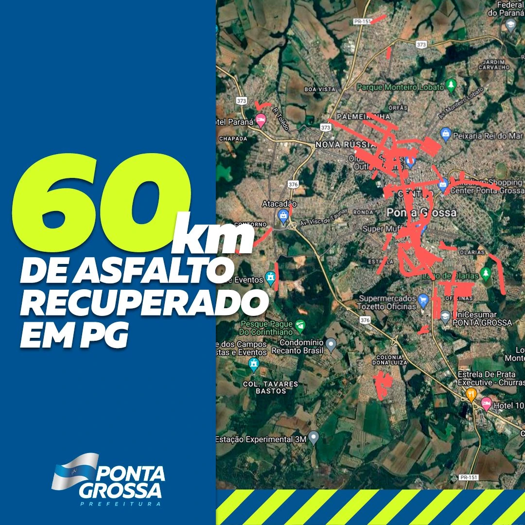 COM ASSESSORIAS - Além do amplo programa de pavimentação Asfalto Novo PG, que já tem mais de R$ 640 milhões em investimentos para obras de asfalto em regiões ainda sem pavimentação, desde 2021 a Prefeitura de Ponta Grossa realizou mais de 60 quilômetros de revitalização em ruas e avenidas que estavam com pavimento ruim, aplicando novo recapeamento asfáltico e fazendo reparos profundos em diversos pontos da cidade.