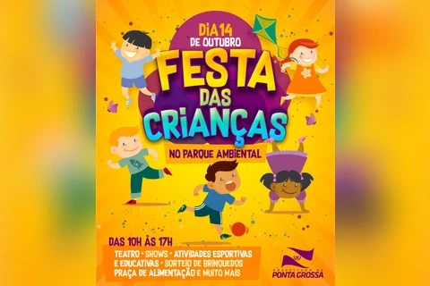 A Prefeitura Municipal de Ponta Grossa, através da mobilização de diversas secretarias e parceiros, vai realizar no próximo sábado (14) uma grande festa no Parque Ambiental em comemoração ao Dia das Crianças. A Festa das Crianças 2017 acontecerá das 10h às 17 horas, com programação diversificada e gratuita para a população. Entre as atrações estão apresentações teatrais, musicais, atividades esportivas e educativas, sorteio de brindes e praça de alimentação.