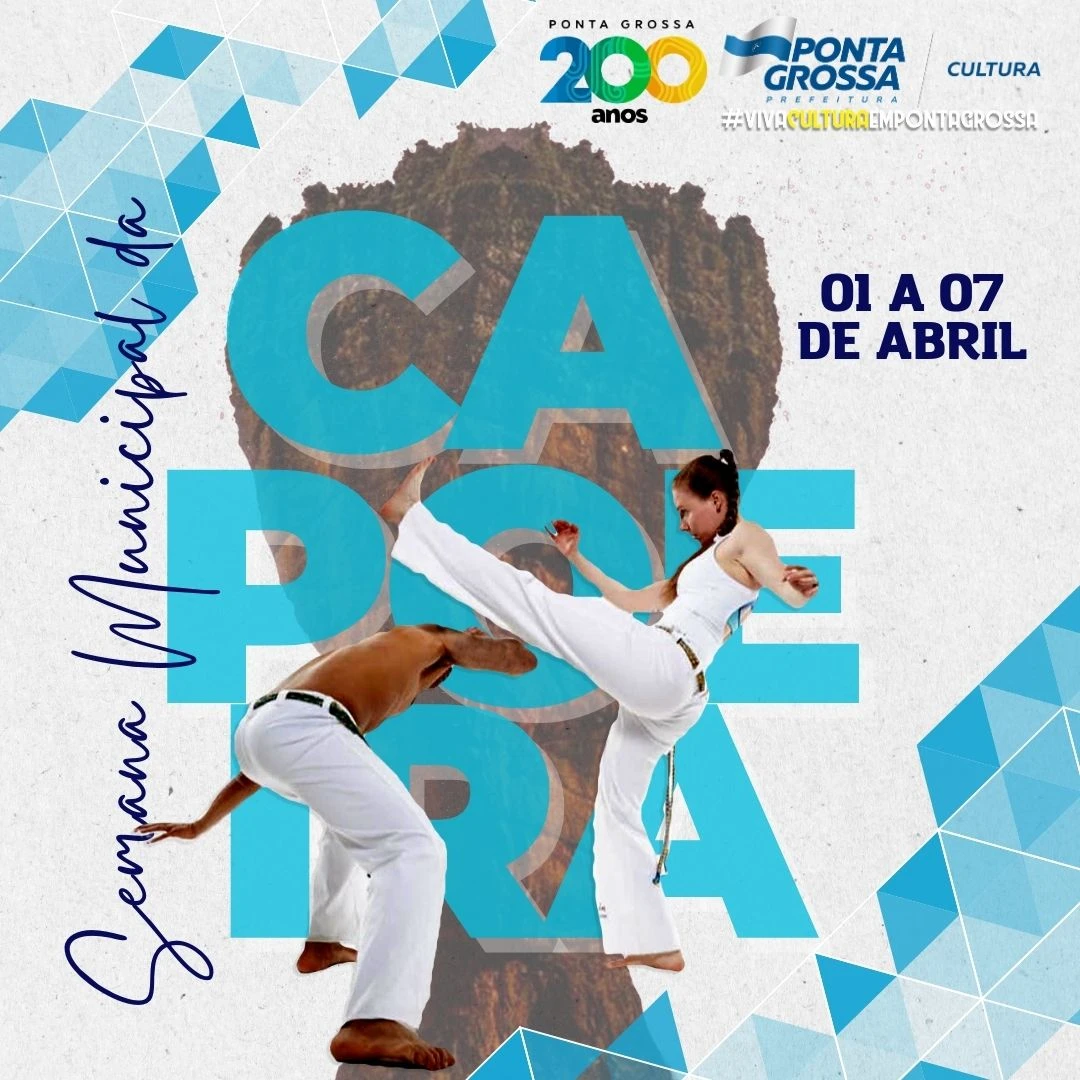 COM ASSESSORIAS - A Prefeitura de Ponta Grossa, através da Secretaria Municipal de Cultura, realiza, entre os dias 1º e 7 de abril, a Semana Municipal da Capoeira. Durante os sete dias, haverá uma série de atividades, como rodas de capoeira, oficinas e palestras em diversos pontos da cidade. Os eventos acontecem nos períodos da manhã, tarde e noite. A abertura oficial está marcada para as 19 horas de segunda-feira (dia primeiro), no Lago de Olarias.