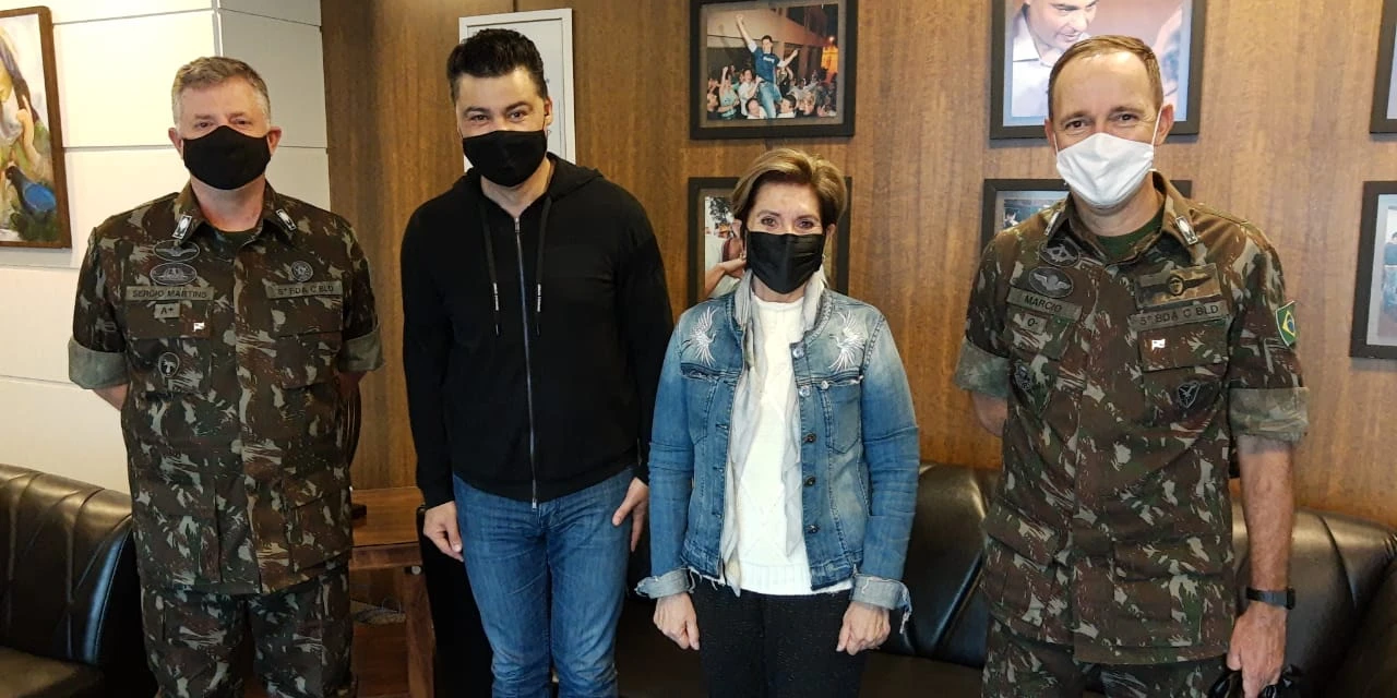 COM ASSESSORIAS - O Prefeito Marcelo Rangel e a vice-prefeita Elizabeth Schmidt receberam, na tarde de hoje (12), a visita do Comando da 5ª Brigada de Cavalaria Blindada (5ªBDA) do Exército Brasileiro.
