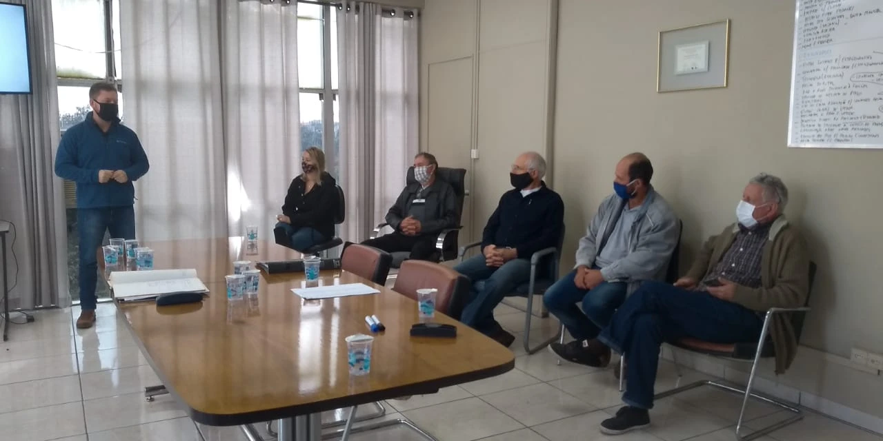 IMPRENSA/Ponta Grossa - A Secretaria Municipal de Agricultura, Pecuária e Abastecimento da Prefeitura de Ponta Grossa (SMAPA) se reuniu com a diretoria da Associação dos Produtores Hortifrutigranjeiros de Ponta Grossa nesta segunda-feira (29) para traçar estratégias de funcionamento das feiras do produtor. No encontro foram discutidas questões que permeiam as atividades dos feirantes atualmente, como o horário de funcionamento das feiras, a qualidade de produção, melhorias para a ampliação do espaço público, oportunidades de crescimento durante a pandemia e a importância do cooperativismo.