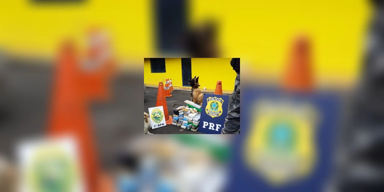 No local, os PRFs acionaram o canil da PMPR, que apontaram para a presença de droga no automóvel. Em vistoria, os agentes encontraram um fundo falso no carro e dentro, 34 tabletes, que pesados, totalizaram 29,8 quilos de maconha. O casal disse que carregou a droga em Maringá (PR) e levaria até Curitiba (PR). No bolso do homem foi encontrada uma porção de cocaína.