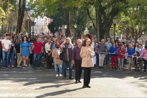 Depois, a procissão seguiu pelas ruas de Castro até chegar à Matriz da cidade.