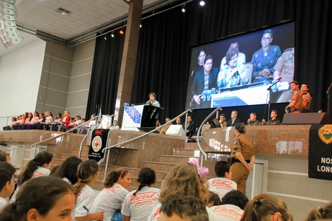 Mais de 3.200 crianças de 62 escolas públicas municipais disseram não ao mundo das drogas na manhã desta sexta-feira (20/10), em Ponta Grossa. Foi durante a formatura do Programa Educacional de Resistência às Drogas e à Violência (Proerd), realizado pela 5ª Cia do Batalhão da Patrulha Escolhar Comunitária, da Polícia Militar, em parceria com a Prefeitura de Ponta Grossa, por meio da Secretaria Municipal de Educação.