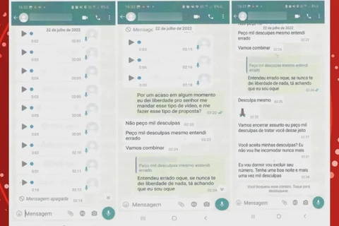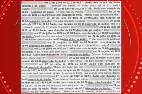 Conforme o Processo Administrativo Disciplinar, as mensagens com teor sexual foram enviadas entre 23h23 e 01h29. Elas foram verificadas pela comissão responsável e registradas em cartório.