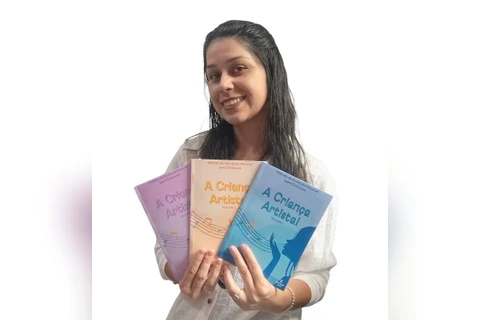 COM ASSESSORIAS - A professora Gizele Iank Leite, do Conservatório de Música Maestro Paulino, da Secretaria Municipal de Cultura, apresenta a sua nova coleção de livros intitulada "A Criança Artista". A obra, dividida em três volumes, tem como objetivo aproximar as crianças pequenas, a partir dos três anos, da leitura e notação musical, um aspecto frequentemente negligenciado na formação de jovens músicos em muitos locais.
