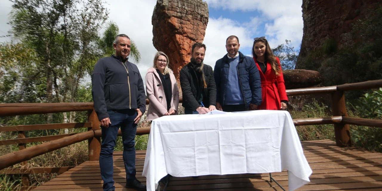 COM ASSESSORIAS - O ingresso de um dos cartões postais mais belos do estado auxiliará famílias em vulnerabilidade social, em Ponta Grossa. A partir deste sábado, o Parque Estadual de Vila Velha concederá um desconto de 10% na entrada para cada quilo de alimento doado para a Campanha PG Sem Fome, da Prefeitura, através do Programa Selo Social. A assinatura da parceria aconteceu nesta sexta-feira (12), em frente ao símbolo da cidade.