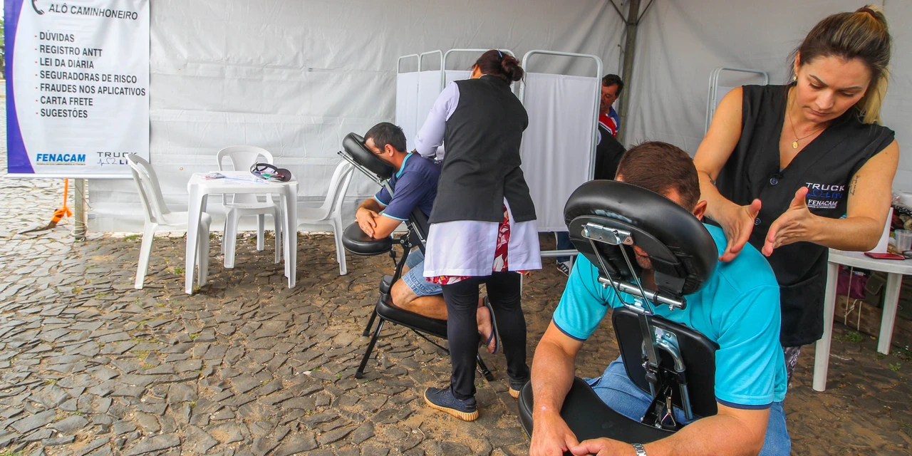 Foram mais de setenta transportadores rodoviários que participaram das atividades totalmente gratuitas, tais como, quick massagem, podologia, teste de glicemia, dentista, corte de cabelo.