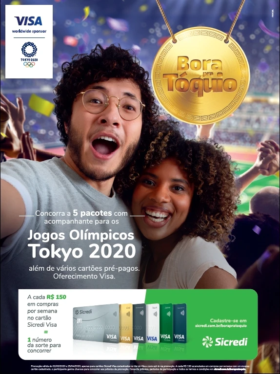 COM ASSESSORIAS - Para celebrar os Jogos Olímpicos Tokyo 2020, que acontecem entre julho e agosto no Japão, e fortalecer o relacionamento com os associados, a Visa, em parceria com o Sicredi – instituição financeira cooperativa com mais de 4,5 milhões de associados e atuação em 22 estados e no Distrito Federal – lança a campanha promocional “Bora pra Tóquio”. Na ação, os participantes concorrem a prêmios quinzenais de até R$ 1.000 em cartões pré-pagos, além de viagens para os Jogos Olímpicos oferecidas pela Visa.