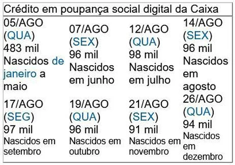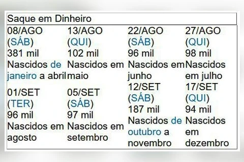 Os saques e transferências bancárias seguem o seguinte calendário: