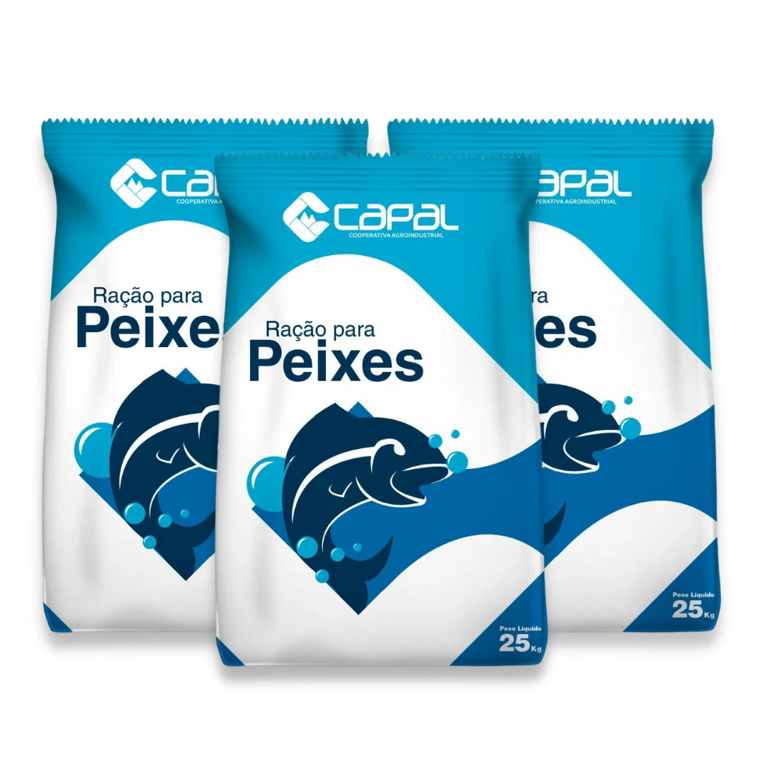 A Ração para Peixes CAPAL é ofertada em três variações: 35% de proteínas com grânulos de 3mm (indicado para peixes de até 150g), 32% de proteínas com grânulos de 8 mm (indicado para peixes de 150g a 400g) e 28% de proteínas com grânulos de 8mm (indicado para peixes acima de 400g).