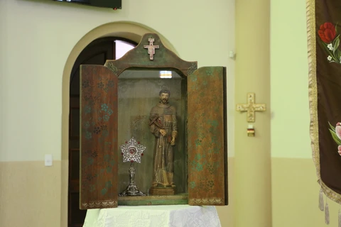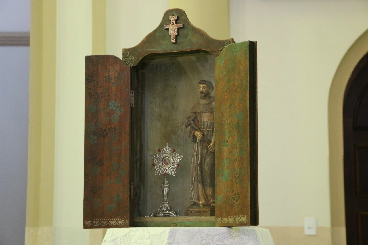 COM ASSESSORIAS - A relíquia e a imagem peregrina de São Francisco de Assis, que estão na Diocese desde o último sábado, dia 20, já foram vistas por aproximadamente 700 pessoas. Na sua acolhida, na Catedral/Paróquia Sant’Ana, a igreja ficou lotada de devotos e, na Paróquia Imaculada Conceição, a Igrejinha de Uvaranas, centenas se aproximaram para ver de perto a relíquia. Os organizadores da peregrinação em Ponta Grossa calculam que um total de 500 devotos tenham ido até as duas igrejas. Hoje, da Igrejinha, a imagem e a relíquia foram levadas para a Paróquia Bom Jesus. Só nessa segunda-feira, das 14 até perto das 17 horas, cerca de 200 pessoas vieram para vê-as. “Momento muito emocionante em minha vida, pois São Francisco de Assis é meu santo de devoção. São Francisco tem uma história de conversão linda e de amor a Cristo, aos irmãos e a natureza. Peço a Deus, pela intercessão de São Francisco de Assis, que derrame sobre minha família e amigos as graças necessárias que necessitamos”, contava Antônio Anhaia, no domingo. Nesta terça-feira, durante o dia inteiro, das 9 às17 horas, os freis estarão proferindo bênção especial – no sistema drive thru – no átrio da igreja, para pessoas e animais de estimação. A missa solene será celebrada pelo bispo Dom Sergio Arthur Braschi, às 19h30. A relíquia é um pequeno fragmento de osso do fêmur de São Francisco. A imagem junto a capelinha é uma das mais antigas existentes no mundo. Ambas vieram da basílica construída em louvor ao santo, em Assis, na Itália. Sua peregrinação pelo mundo festeja os 800 anos da Ordem Franciscana, completados em 2021.