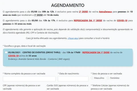 O agendamento para a vacinação já está aberto no site oficial da Prefeitura (