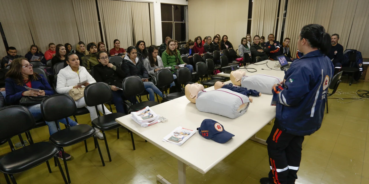 A equipe do projeto Samu Escola: Educar para Mudar promoveu, nesta terça-feira (15), a capacitação de alunos do curso de Enfermagem da Faculdade Cescage. De acordo com a coordenadora do projeto e Técnica Auxiliar de Regulação Médica (TARM) do SAMU, Rozângela Ribeiro Silva, 57 acadêmicos participaram do treinamento realizado na Secretaria de Educação do Município. “Tivemos um treinamento com as cartilhas do projeto SAMU Escola que serão utilizadas pelos acadêmicos, nos próximos dias, para trabalhar com os alunos do quarto ano das escolas municipais”, declara. Além de tratar do material, os acadêmicos também foram orientados sobre as formas de abordagem do conteúdo nas escolas. “Nosso intuito é de que os temas sejam tratados de forma dinâmica e criativa, usando como meio simulações, vídeos, etc. Também reforçamos a importância de tratar a questão do TROTE, prática bastante frequente e que acontece geralmente nos horários e saída das escolas”, finaliza Rozângela.