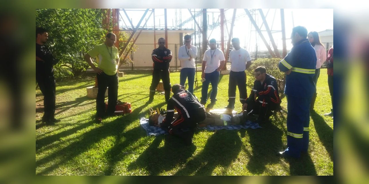 Durante o treinamento, cerca de 30 funcionários receberam instruções sobre abordagem primária de vítima com trauma, mobilização em trauma e resgaste de vítima em local de difícil acesso.