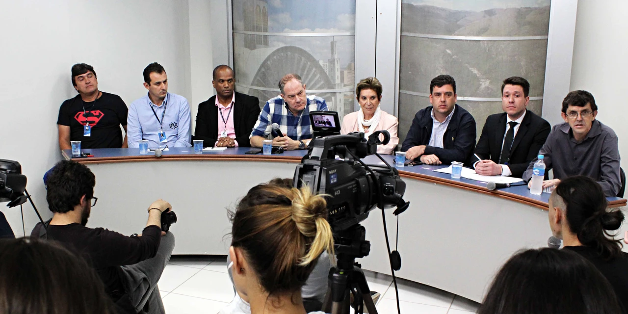 Na tarde desta sexta-feira (11), a vice-prefeita Elizabeth Schmidt, acompanhada dos secretários de Obras e Serviços Públicos, Márcio Ferreira; Indústria e Comércio, Paulo Carbonar; Adjunto de Saúde, Robson Xavier; Segurança Pública, Ary Lovato; Meio Ambiente, Paulo Barros; Gestão Financeira, Cláudio Grokoviski; e o Procurador Geral do Município, Marcus Freitas participaram de uma coletiva de imprensa realizada pelos alunos de jornalismo da Universidade Estadual de Ponta Grossa (UEPG). A entrevista serviu para que os secretários respondessem aos questionamentos dos alunos a respeito de diferentes temas envolvendo o Município.