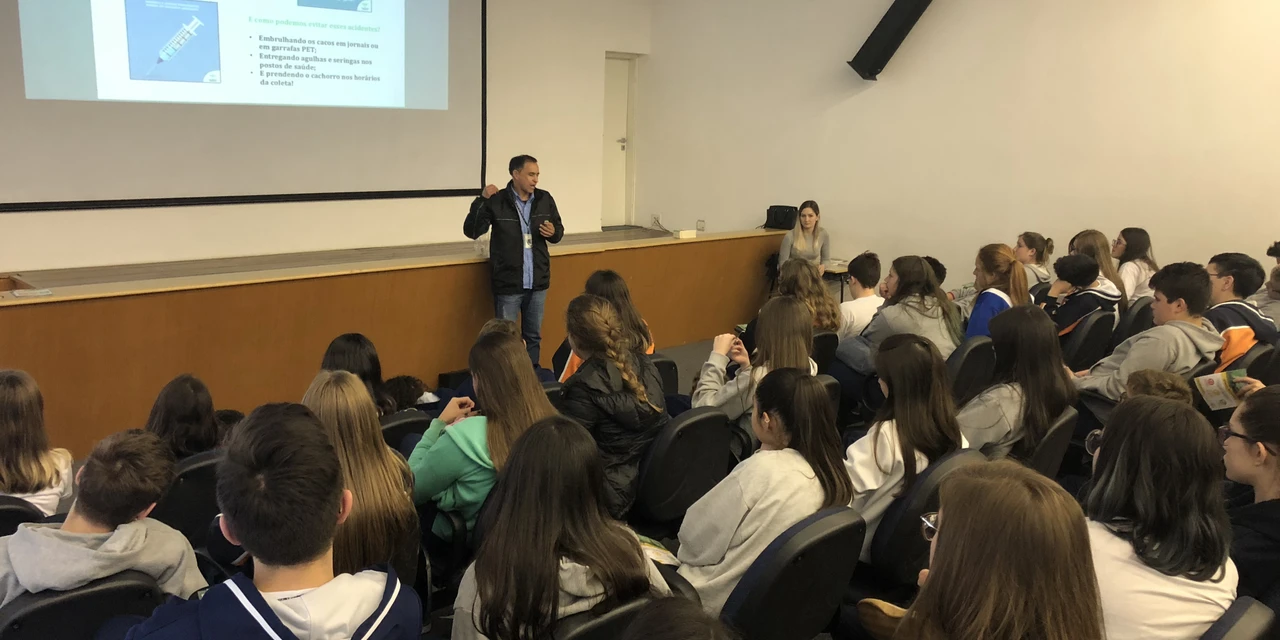 Nesta primeira etapa, a Diretora de SGI, Caroline M. Borsato, e o Coordenador de Segurança da PGA e Zero Resíduos, João Carlos Cardozo, fizeram uma palestra para os estudantes do 8º e 9º ano do Ensino Fundamental do Sepam. Os profissionais apresentaram as atividades de cada empresa, falaram sobre os cuidados e os processos de coleta, explicaram sobre a reciclagem e ensinaram formas de prevenir acidentes com os resíduos urbanos.