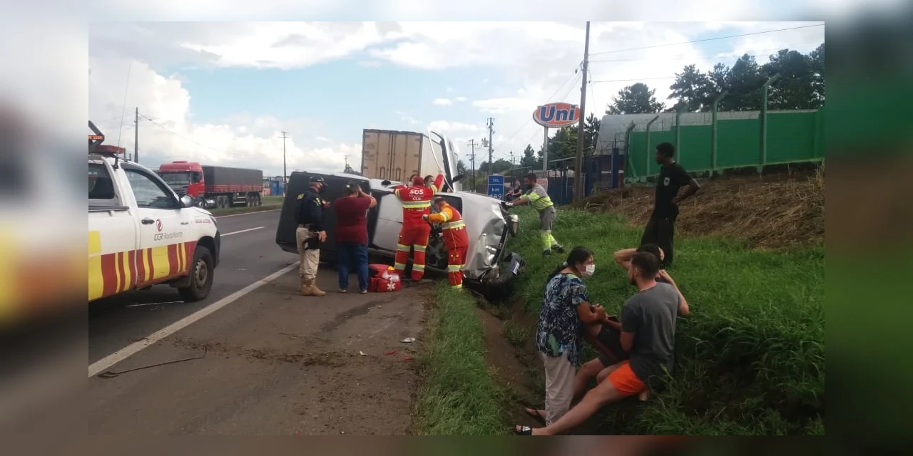 Segundo a Polícia Rodoviária Federal, responsável pelo atendimento da ocorrência, uma GM/Montana com placas de Ponta Grossa seguia em direção a Curitiba quando rodou na pista e foi atingida por um caminhão Volto, de Sarandi, também no Paraná, que vinha logo atrás. Com a força do impacto, a Montana tombou depois de ser projetada contra o barranco.