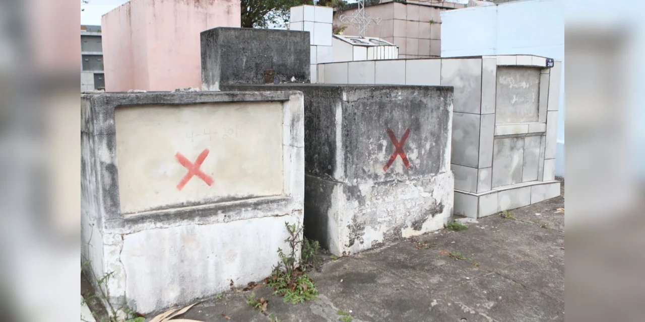 COM ASSESSORIAS - O Serviço Funerário de Ponta Grossa está iniciando uma ação de identificação de túmulos em situação de abandono ou com falta de manutenção no Cemitério São Sebastião. As sepulturas que apresentam sinais de falta de manutenção estão sendo marcadas com um "X" em vermelho, sinalizando a necessidade de regularização.