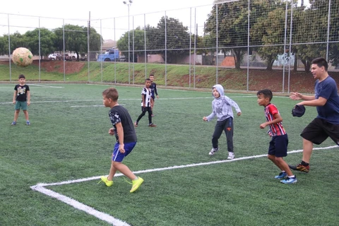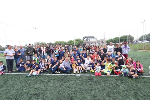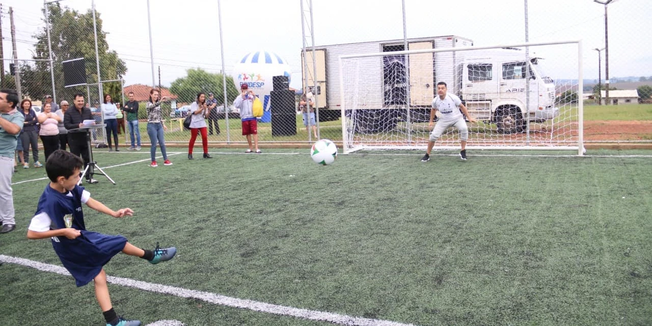 Num ambiente de muita descontração a programação foi aberta com as crianças chutando bolas para o gol defendido pelo prefeito, que assim inaugurou o campo dotado de gramado sintético, alambrado e iluminação. “Em Ponta Grossa crianças, jovens e adultos podem desfrutar de campos com condições antes encontradas apenas em campos particulares ou clubes sociais, um programa que serve de exemplo e certamente vai revelar novos talentos para o futebol, além de contribuir para a formação de melhores cidadãos”, enfatizou Rangel.