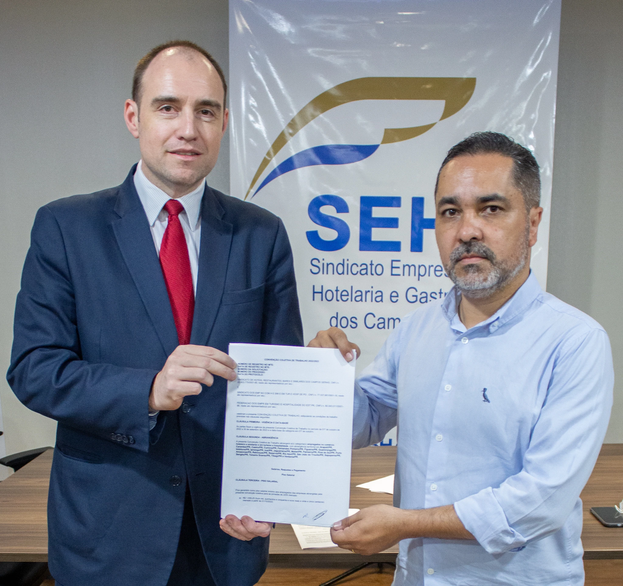 COM ASSESSORIAS - O Sindicato Empresarial de Hotelaria e Gastronomia dos Campos Gerais (SEHG) e o Sindicato dos Empregados no Comércio Hoteleiro e Similares em Turismo e Hospitalidade de Ponta Grossa (SindehTur), assinaram na quarta-feira (16) a Convenção Coletiva de Trabalho (CCT) para 2022 e 2023.