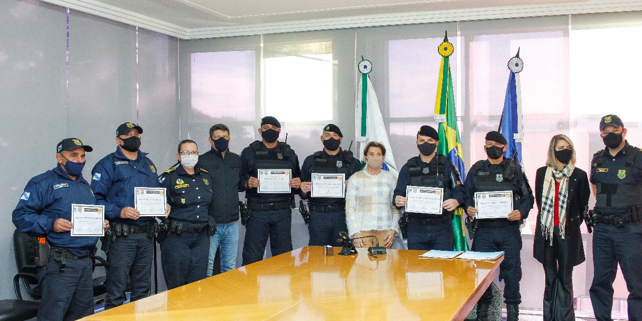 COM ASSESSORIAS - A Prefeitura de Ponta Grossa, através da Secretaria Municipal de Cidadania e Segurança Pública (SMCSP), realizou, na tarde de ontem (25), uma cerimônia para homenagear agentes da Guarda Civil Municipal (GCM) que se destacaram no exercício de suas funções neste ano. O evento contou com a presença da prefeita Elizabeth Schmidt, do vice-prefeito Saulo Hladyszwski, da secretária de Cidadania e Segurança Pública, Tânia Sviercoski, e do secretário de Administração e Recursos Humanos, Maurício Silva. Também estiveram presentes a comandante da GCM, Maribel Krum e o subcomandante Anderson Machado.
