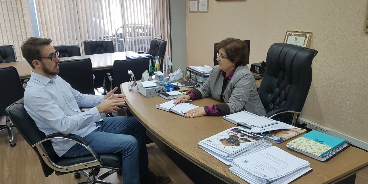 COM ASSESSORIAS - O vereador Geraldo Stocco (Rede) se reuniu nesta quarta-feira (18) com a secretária de Educação de Ponta Grossa, Esméria Savelli. O encontro teve como objetivo discutir um projeto de conscientização dos alunos na rede pública sobre a causa animal – o vereador estuda, junto com ONGs e outros representantes do setor dos direitos dos animais, apresentar um projeto de lei que trate do tema.