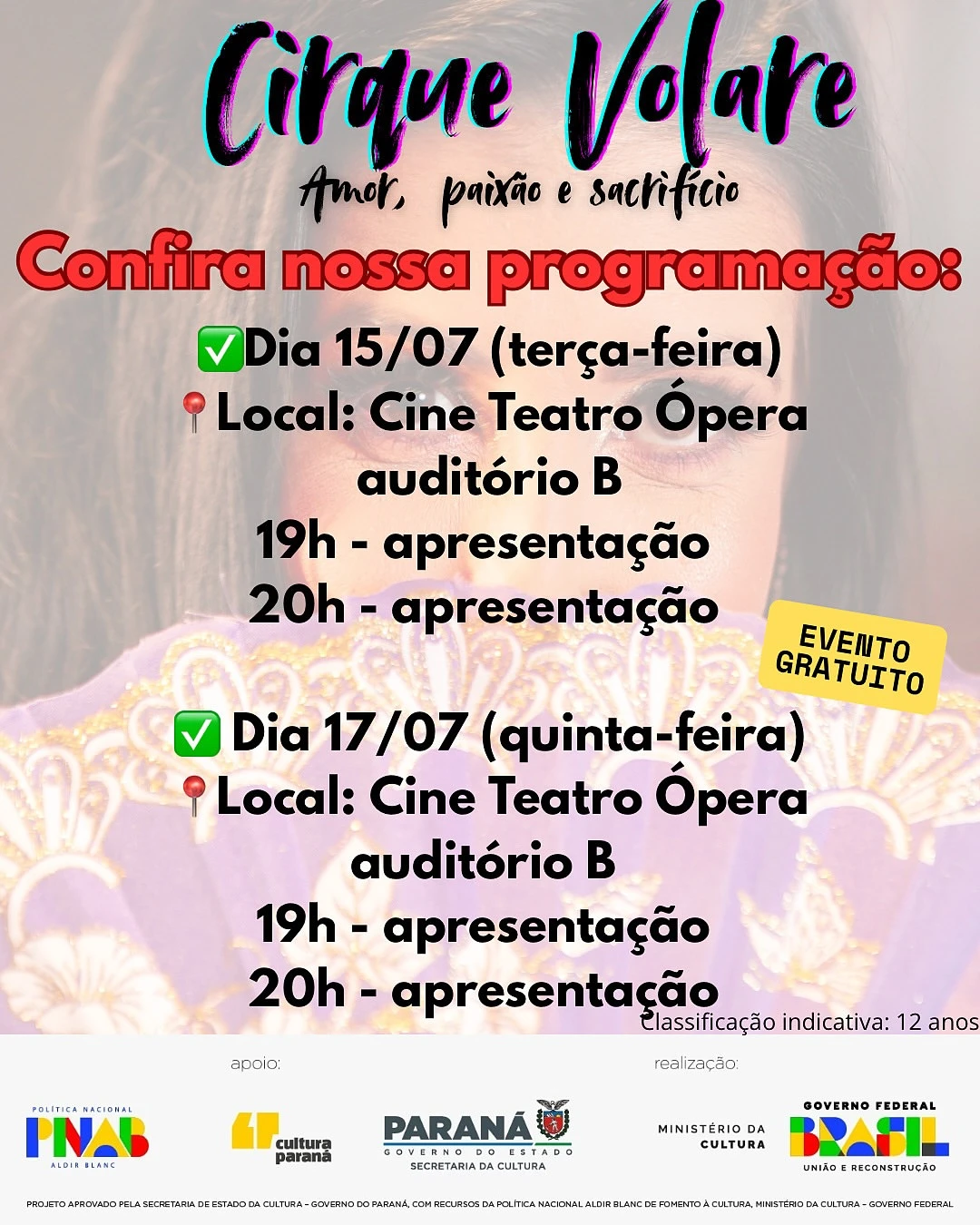 COM ASSESSORIAS - Depois de emocionar o público no Parque Monteiro Lobato, o espetáculo “Cirque Volare: Amor, Paixão e Sacrifício” segue sua temporada com novas apresentações nesta terça (15) e quinta-feira (17) no Cine Teatro Ópera – Palco B, no centro da cidade. Com entrada gratuita, a montagem convida o público para uma experiência que mescla acrobacias, dança, poesia e ancestralidade, resgatando a força e a beleza da cultura cigana. Unindo arte circense e cultura cigana, o projeto propõe uma experiência poética e sensível sobre identidade, pertencimento e resistência cultural.