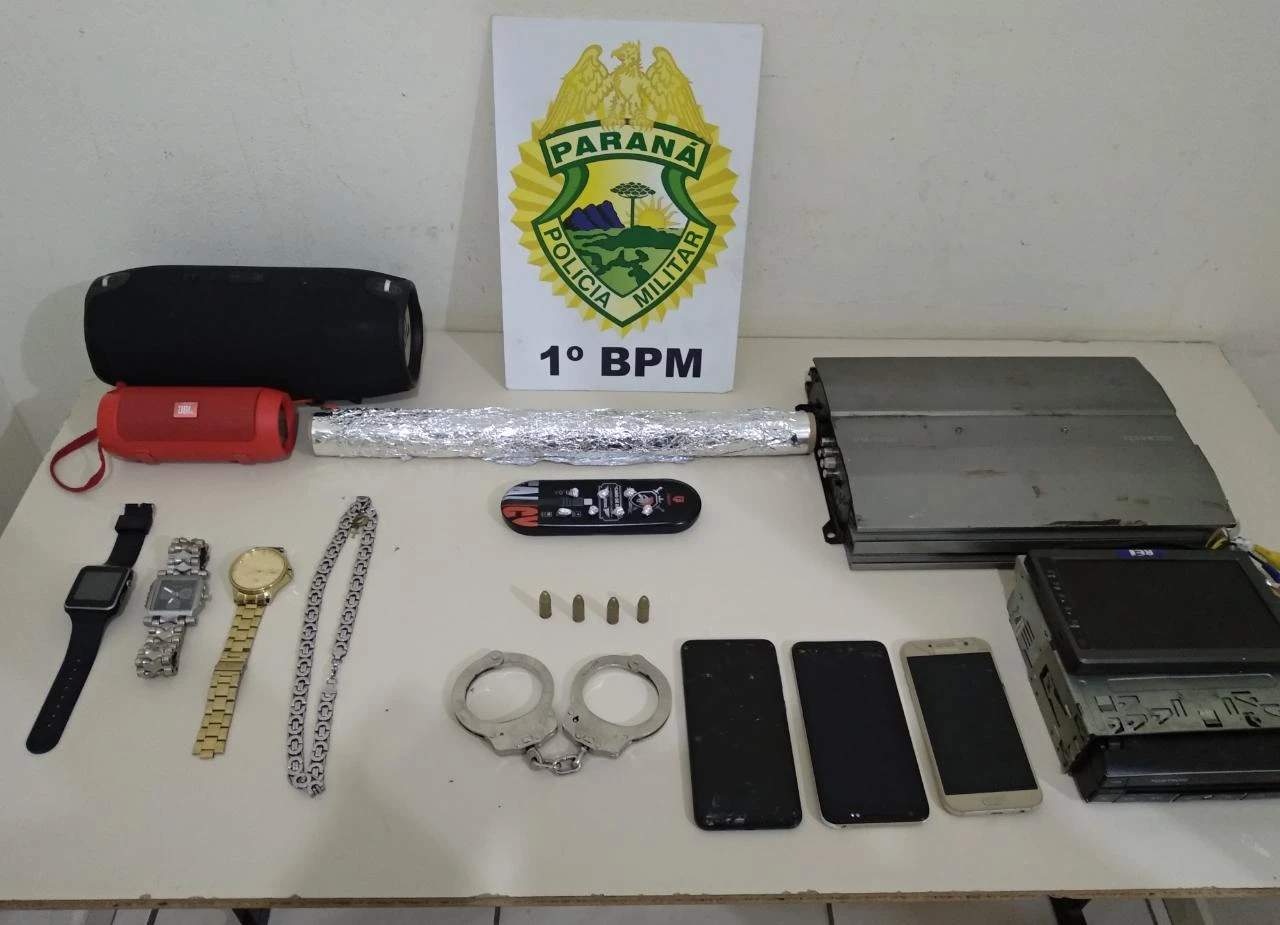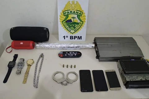 No fim da tarde desta quinta-feira, policiais militares abordaram um rapaz de 24 anos, suspeito de tráfico.A ocorrência foi registrada na Rua Camilo Augusto Pires, em Uvaranas. Na casa do individuo, foram encontradas sete pedras de crack, uma algema e quatro munições. Relógios e outros eletrônicos também foram encontrados (foto abaixo). O rapaz foi preso.
