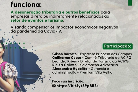 O evento é uma oportunidade para empresários do setor de eventos terem mais detalhes dos benefícios do programa e tenham oportunidades de recuperação após um duro período de prejuízos e incertezas que foram os meses de pandemia. "Aquela empresa do setor de eventos ou turismo que não aproveitar os benefícios do PERSE, que inclui alíquota zero de impostos por cinco anos na parte federal, vai estar em desvantagem maior ainda. Não bastasse a pandemia ter prejudicado a sua empresa, a concorrência vai estar aproveitando esses benefícios do programa e ela não. Por isso o trabalho da ACIPG e do Comitê Tributário de divulgar a existência desse programa, e que as empresas precisam ficar sabendo que ele existe, para que o setor possa se recuperar dos prejuízos da pandemia", explica Guilherme Cesco, coordenador do Comitê Tributário da ACIPG.
